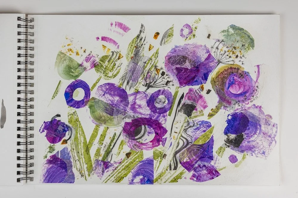 An zwei Tagen entdecken, sammeln und skizzieren wir – inspiriert von Pflanzen, Strukturen und kleinen Details im Garten. Zunächst gestalten wir freie Collagepapiere, ohne ein fertiges Bild im Kopf.
